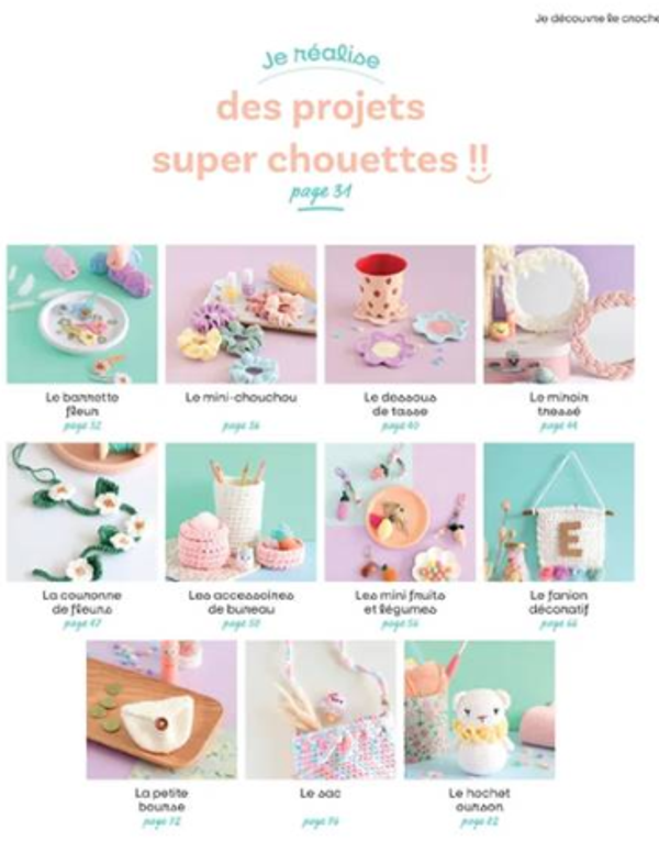 Effectivement, il leur offre la possibilité de s’amuser à crocheter plus de 10 créations originales, en choisissant leurs projets préférés parmi différents niveaux de difficulté :